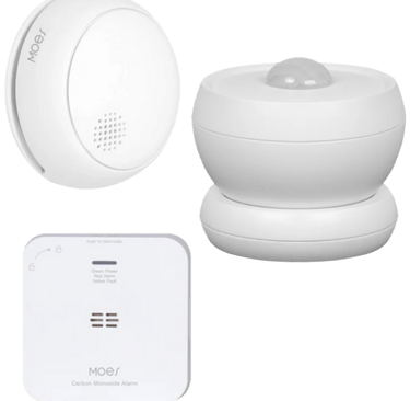 Combines cameras/motion sensors/door alarms/smoke detectors